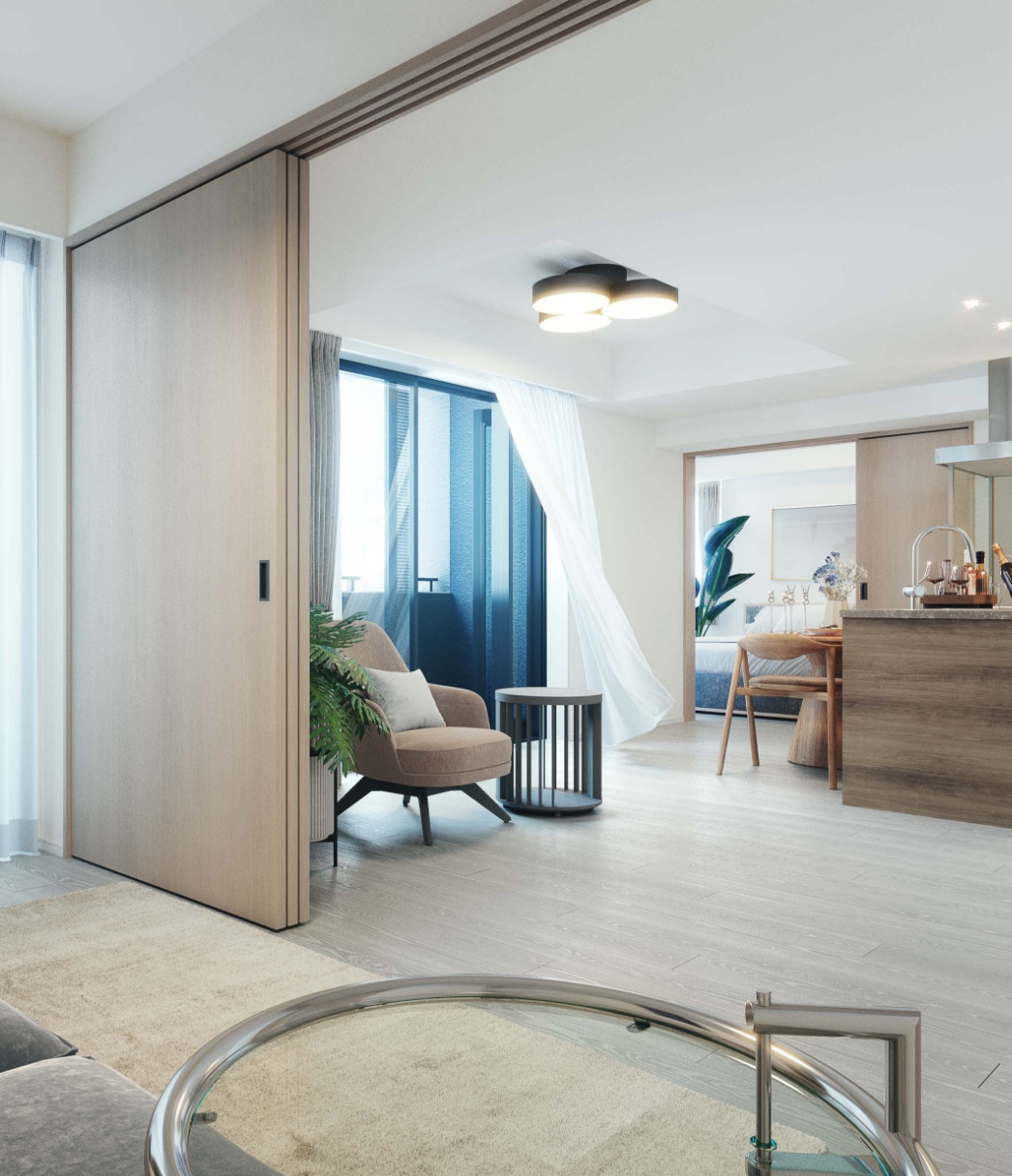 ※掲載のリビング・ダイニング完成予想CG(Gタイプ)は計画段階の図面を基に描き起こしたもので、形状・色味等は実際とは異なります。また、家具・調度品等は販売価格に含まれておりません。